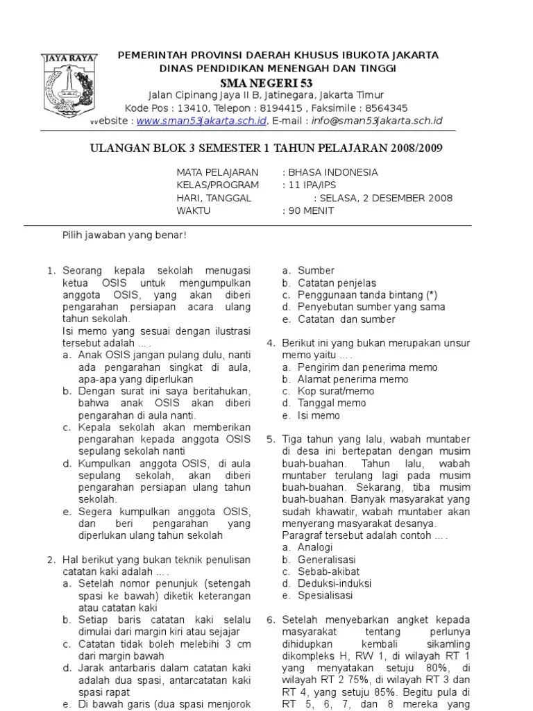 Pelajaran Bahasa Indonesia Kelas 11 - Buku Siswa Bahasa Indonesia Wajib Kelas Xi Semester 2 / Soal bahasa indonesia sma kelas 11.